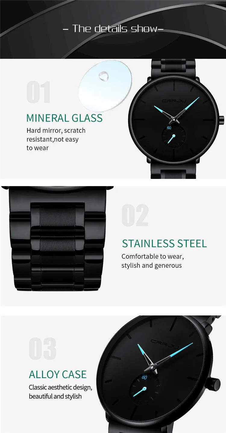 ساعة عصرية تجمع بين الأناقة اليومية واللمسة الشبابية الجريئة، مصممة للرجل الذي يحب التميز دون مبالغة. CRRJU / Kajun 2150 ليست مجرد ساعة، بل تفصيل ذكي يكمل إطلالتك في الدراسة، الخروجات، والحياة اليومية بثقة وأناقة
